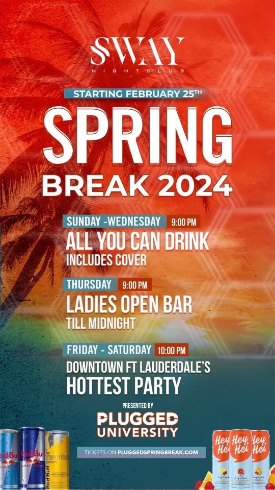 Source : collegepartycruise.comSway Nightclub Spring Break 2024 at Sway Nightclub Sunday, Feb
